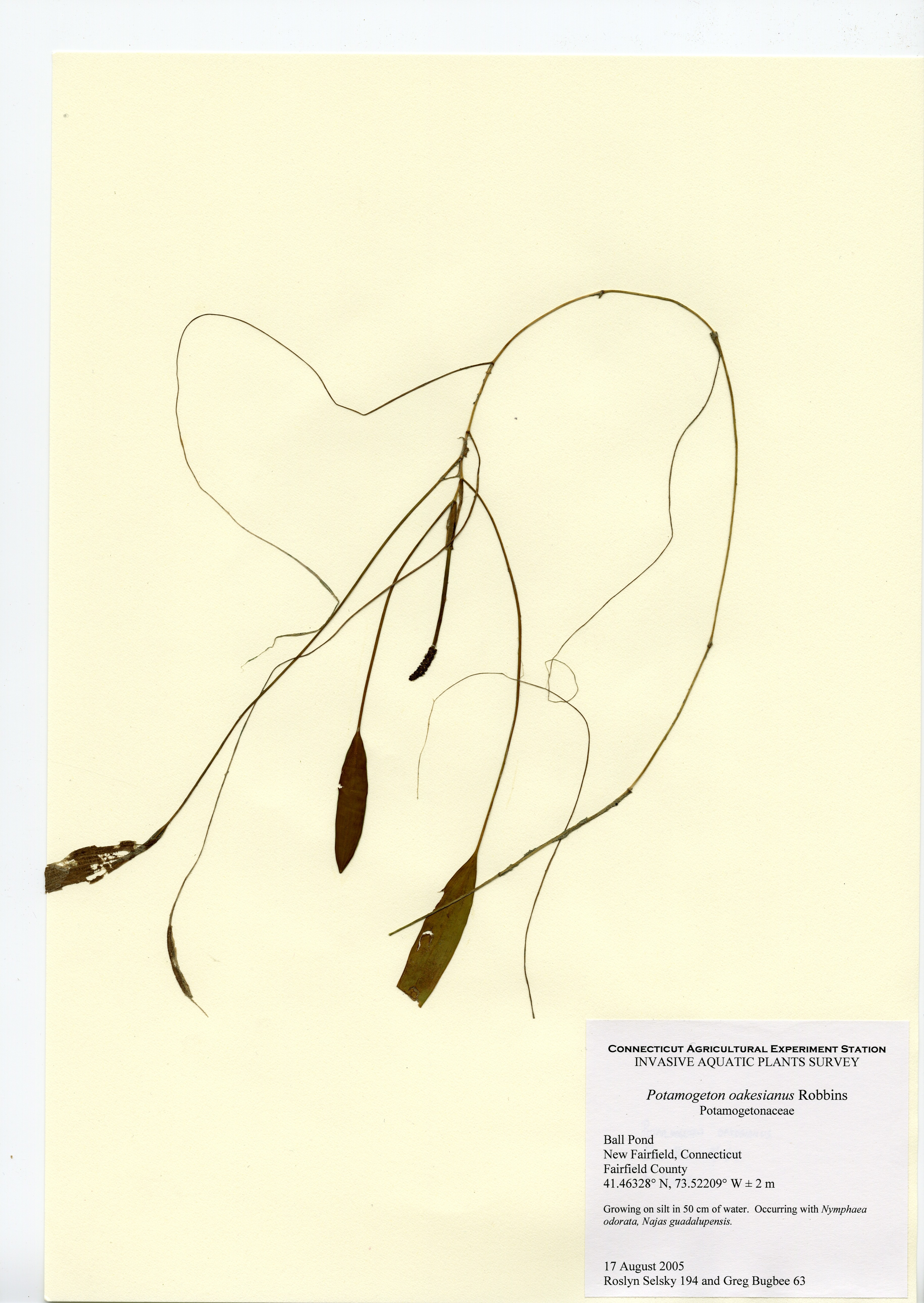 Potamogeton oakesianus, Ball Pond in New Fairfield August 17, 2005