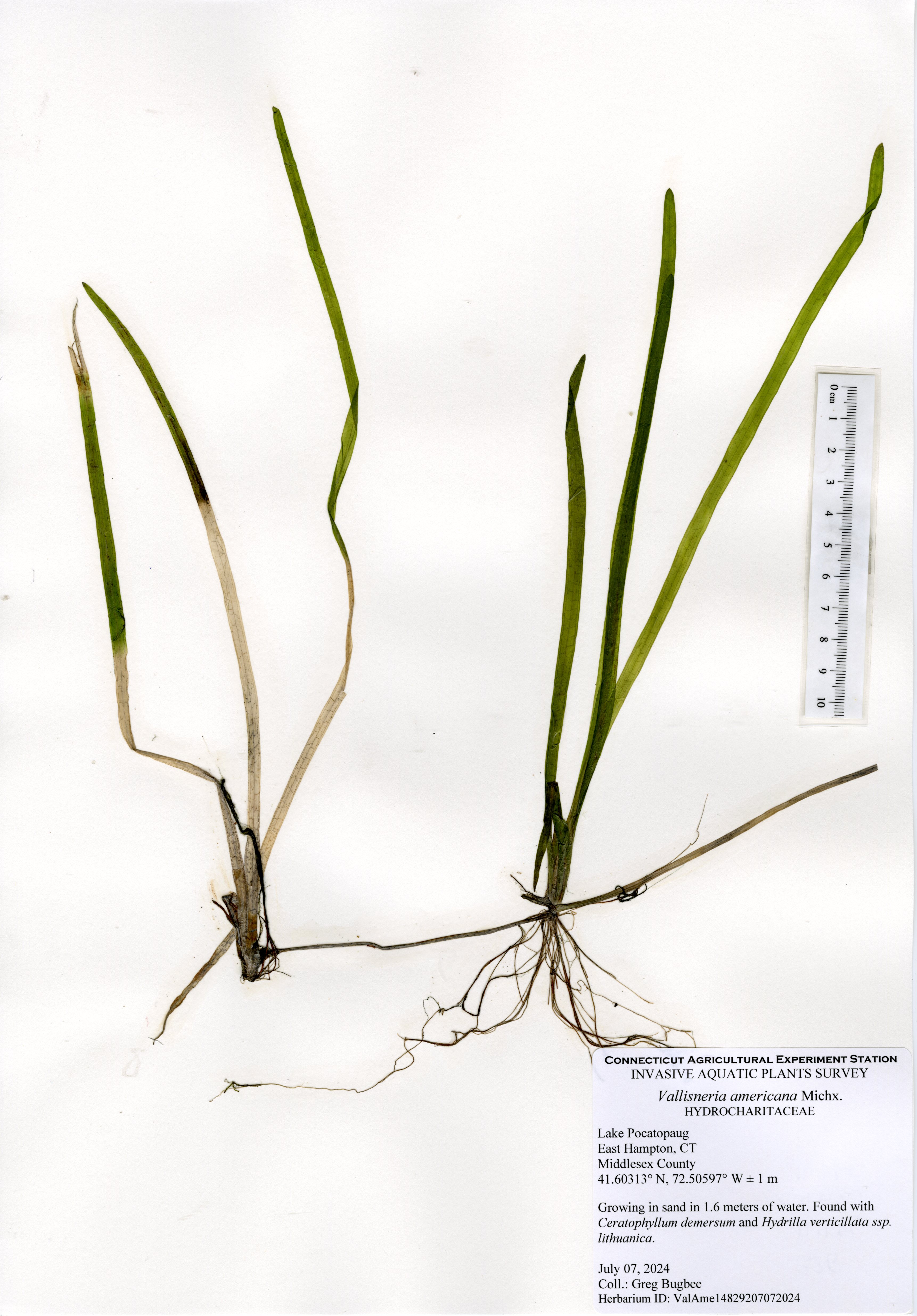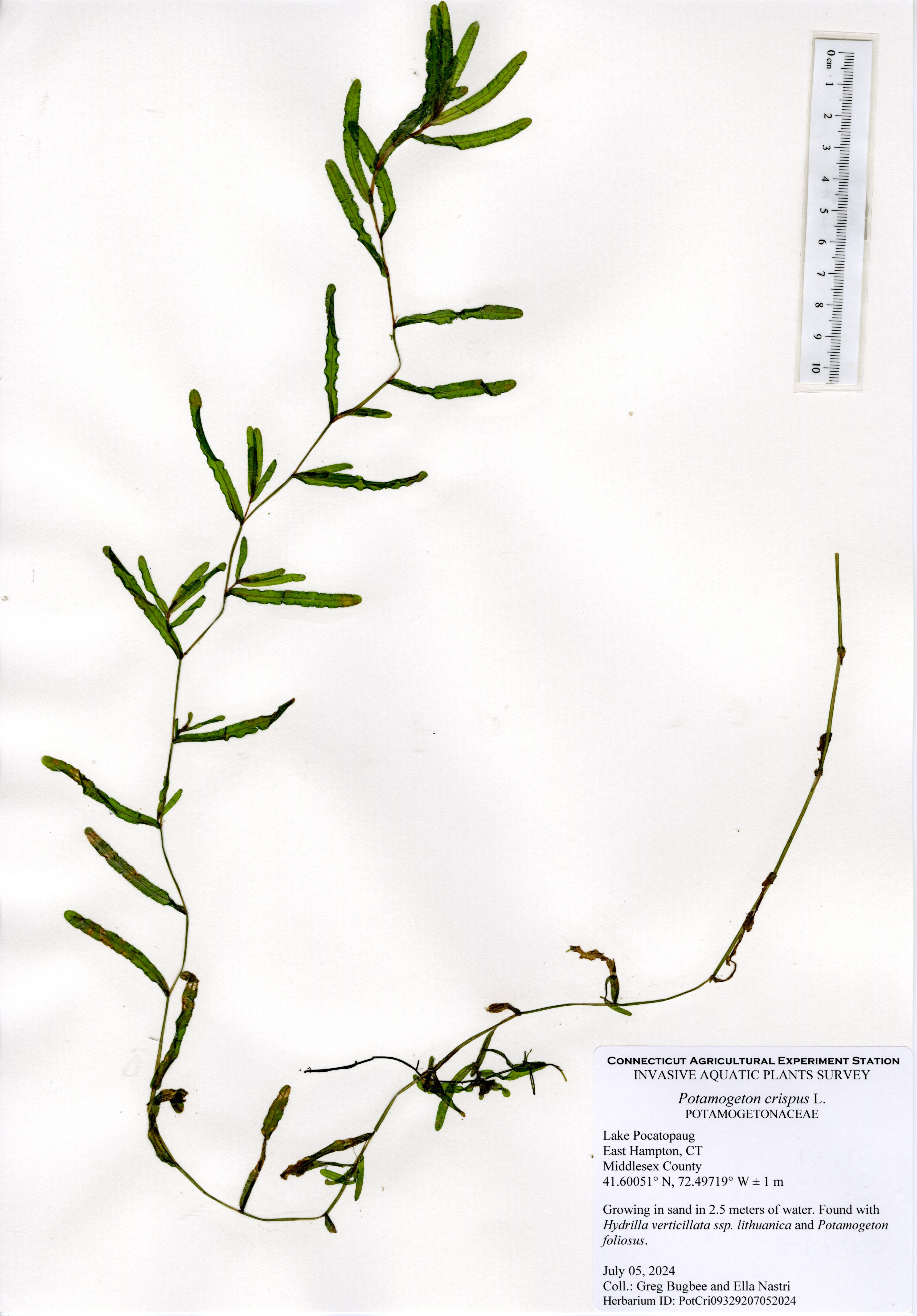 In 2024, water clarity was still limited with a green color to the water, but there was more aquatic vegetation present. Unfortunately, this also included the presence of a new invasive aquatic plant to the state, northern hydrilla (Hydrilla verticillata subsp. lithuanica). This plant, first established in the Connecticut River, has spread to at least ten other waterbodies throughout the state, including Lake Pocotopaug. Northern hydrilla was found throughout the northern and southern shorelines with some sparse populations along the western and eastern shorelines. The local stakeholders are actively working to keep the population under control.