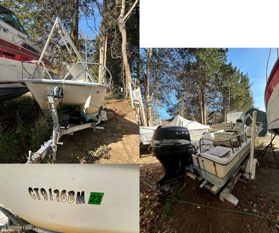 In Connecticut, a vessel is considered abandoned if it is: • Left on someone’s property for more than 24-hours without the property owner’s permission; • Found free floating and unattended on the waters of the state for more than 24-hours (you should note the position of the vessel and notify DEEP Emergency Dispatch at 860-424-3333 before taking the vessel into custody); • Improperly registered and left on the waters of the state for more than 24-hours (this provision is intended for police or government use); • Left at a mooring for more than sixty days since payment for the mooring became overdue; (this provision is intended for municipal or harbormaster use) • Left at a commercial facility for more than one year since payment for storage became overdue; or,• Found during a declared public emergency in a public right-of-way.