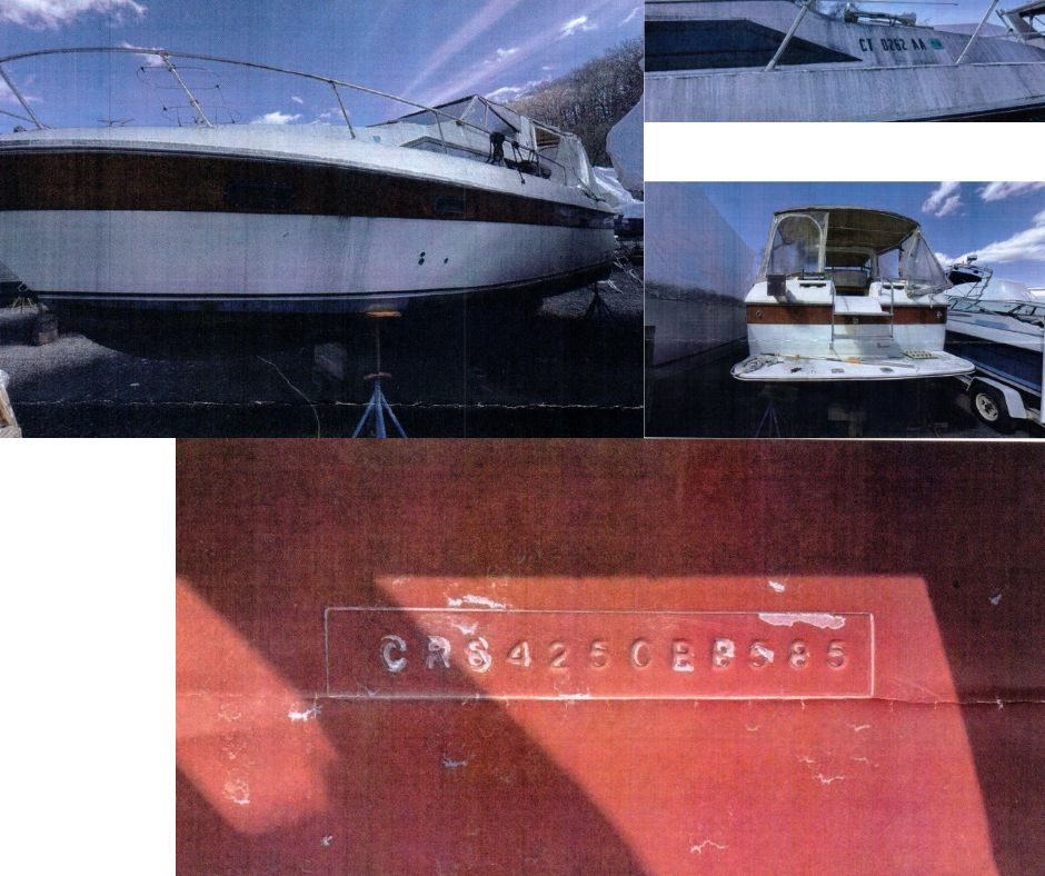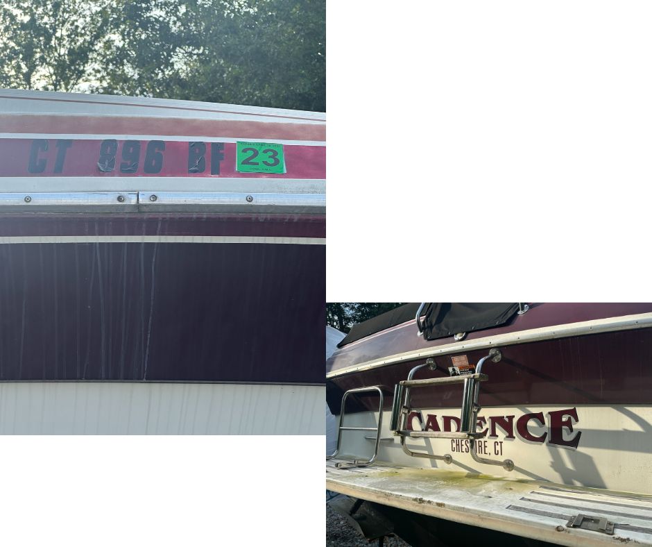 “Documented” vessels are vessels that are or were numbered (registered) with the Coast Guard. They are larger vessels that will likely have a name and hailing port painted on the back of the vessel, and are unlikely to have a “CT” registration number on the front but they may still display a Connecticut registration decal. There are special rules for dealing with an abandoned vessel that is or was documented. If you are unsure if the vessel you are dealing with is or was documented, feel free to call us at (860) 447-4354.