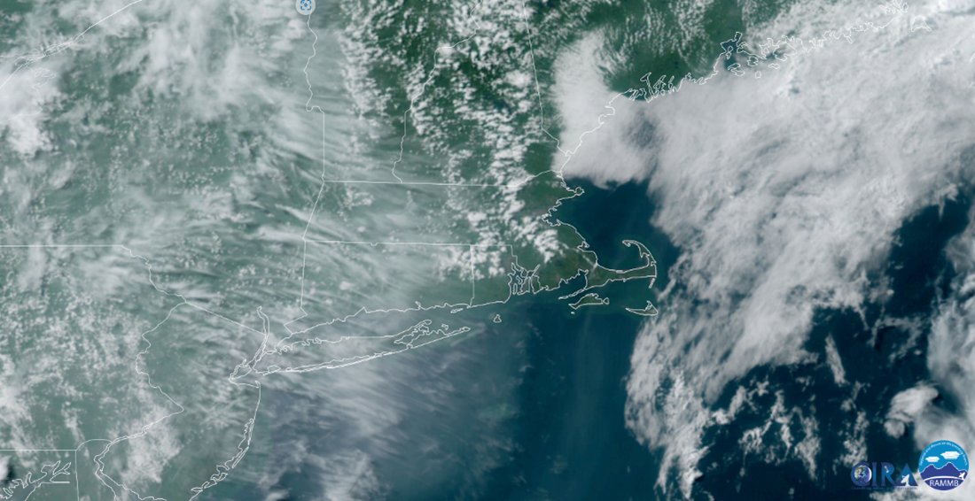 Visible Satellite Map, June 30, 2023, 3:45 p.m., showing smoke plume over Connecticut.