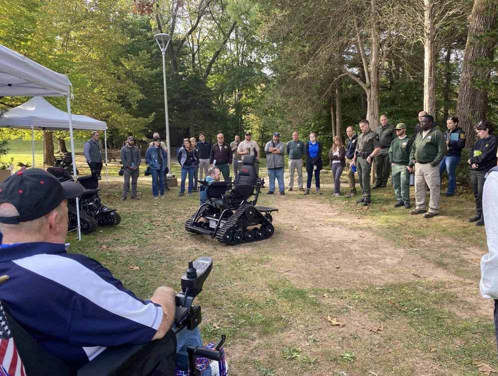 Suggested Caption for Attached Photos: DEEP held a Demo Day at Dinosaur State Park on September 23, 2024, for DEEP Staff and interested stakeholders to learn about the wheelchairs and get trained on how to operate them. Among the agency partners and stakeholders in attendance were the CT Office for Disability and Accessibility Services (ODAS), the CT Department of Social Services, Summit Adaptive, and Gaylord Adaptive Sports.