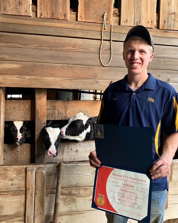 Now in his freshmen year at SUNY Cobleskill pursuing a degree in dairy production and management, Caleb is quick to credit his FFA advisors for their support, especially Bonnie Kegler. He shares, “Mrs. Kegler worked tirelessly with me on this – I wouldn’t be here without her.”