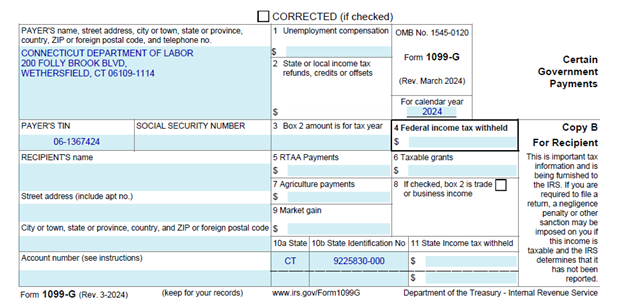 CTDOL redesigned the 1099-G tax form for the tax year 2024. Any previously issued CTDOL 1099-G forms remain valid.