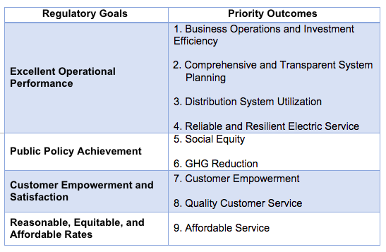 Table: Adopted PBR Regulatory Goals and Priority Outcomes